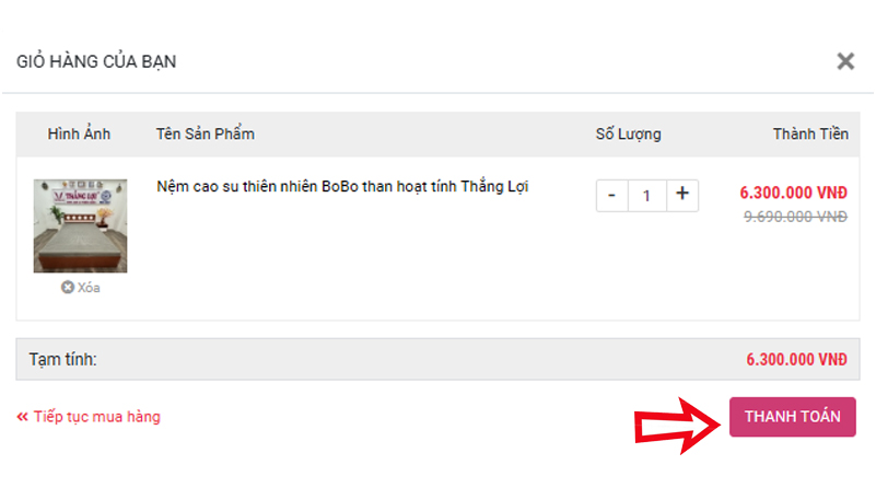 Bước 3: Màn hình sẽ hiển thị Popup thanh toán, ở bước này vui lòng kiểm tra thông tin và bấm vào biểu tượng " THANH TOÁN "